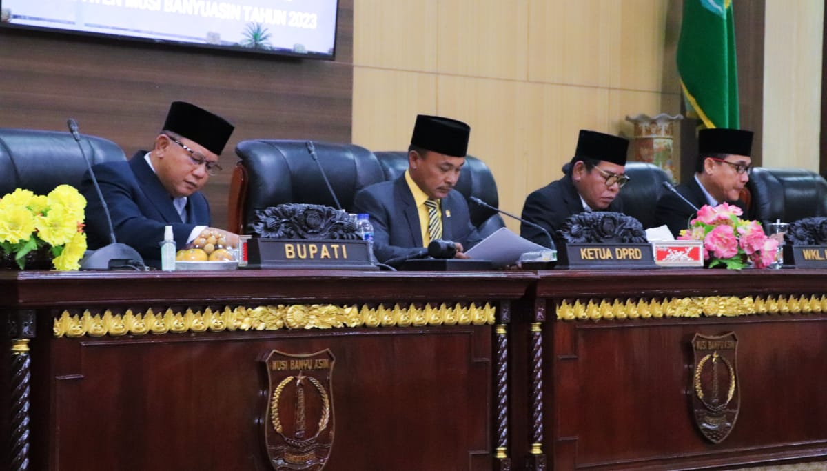 Rapat Paripurna dipimping Ketua DPRD Muba Sugondo SH, turut hadir Pj Bupati Muba H Apriyadi diwakili Pj Sekretaris Daerah Kabupaten Muba H Musni Wijaya SSos MSi, Wakil Ketua DPRD Muba Jhon Kenedi dan Endi Susanto. Pengesahan tersebut dilakukan setelah Ketua DPRD Muba meminta persetujuan seluruh pimpinan dan anggota dalam forum paripurna.