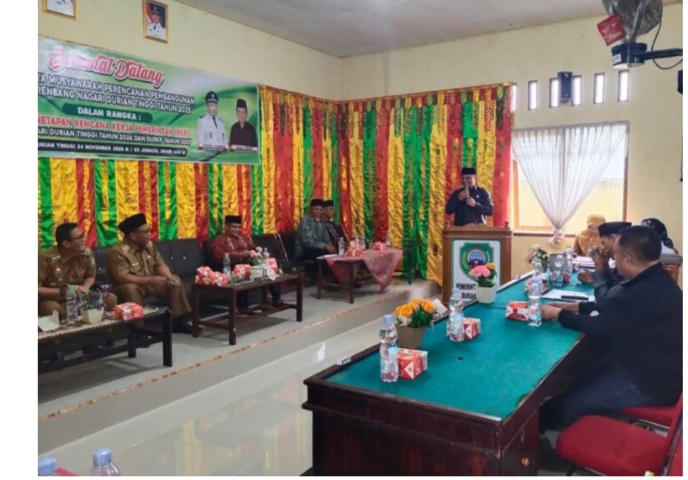 PASAMAN – MMN, Anggota DPRD Kabupaten Pasaman, Fadly Mimanda Putra, yang juga merupakan Anak Nagari Durian Tinggi, menghadiri dan memberikan sambutan pada agenda Musyawarah Perencanaan Pembangunan (Musrenbang) Nagari Durian Tinggi. Kegiatan berlangsung di Gedung Pertemuan Anak Nagari Durian Tinggi, Senin (24/11/2025).