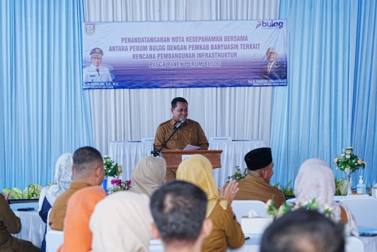 Palembang – MMN, Dalam rangka terus memperkuat Ketahanan Pangan di Kabupaten Banyuasin, Bupati Banyuasin, Dr. H. Askolani, SH., MH menandatangani Momerendum of Understanding (MoU) dengan Perum BULOG (Perusahaan Umum Badan Urusan Logistik) tentang Hibah Tanah untuk pembangunan Infrastruktur Pasca Panen Perum Bulog di Kabupaten Banyuasin yang berlangsung di Gudang Bulog Kenten Sukamaju, Kota Palembang pada Selasa (24/02/2026).